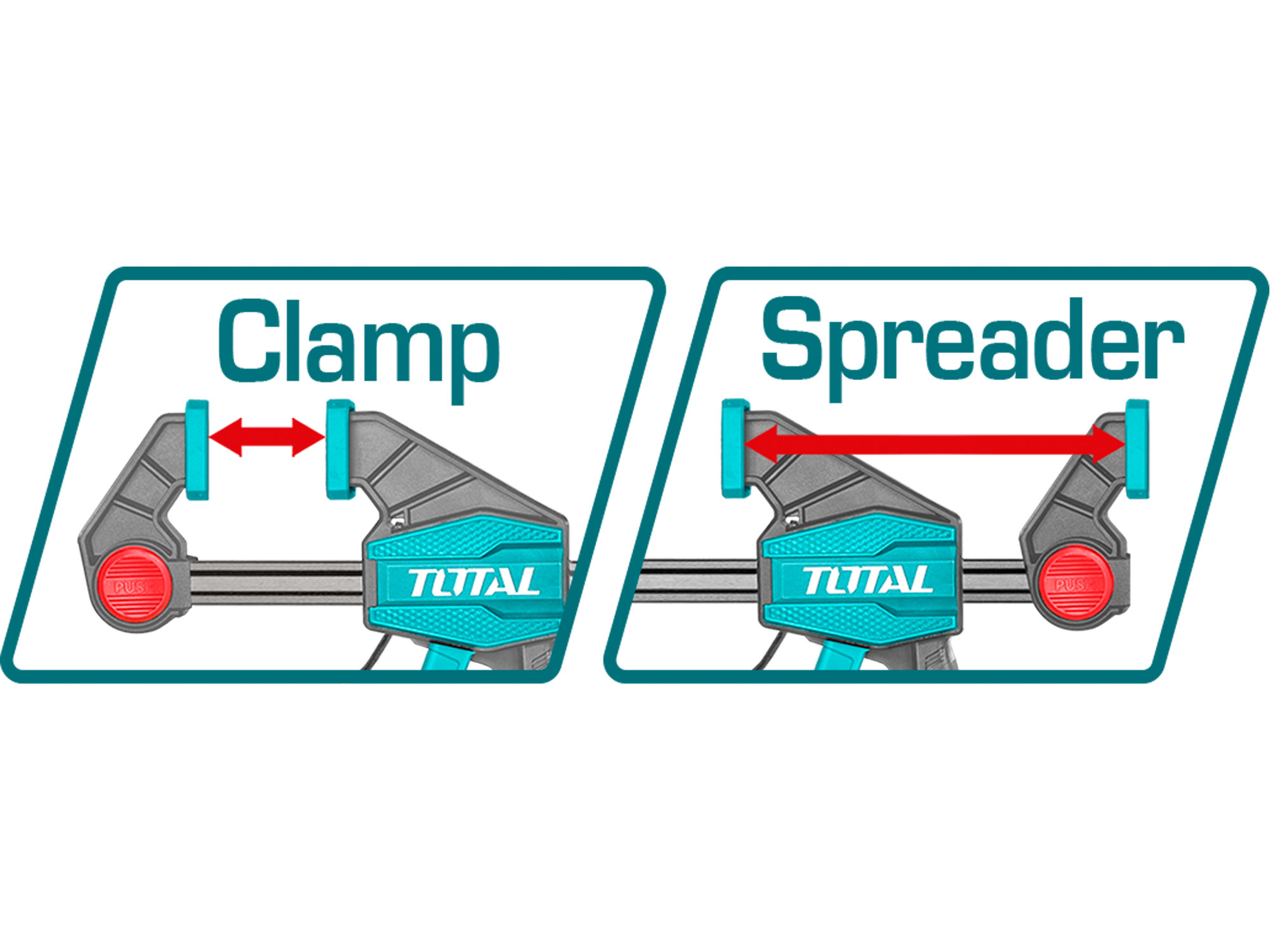 Obě čelisti jsou otočné a posuvné a díky tlačítku rychloposuvu umožňují rychlé přenastavení ramen před dotažením